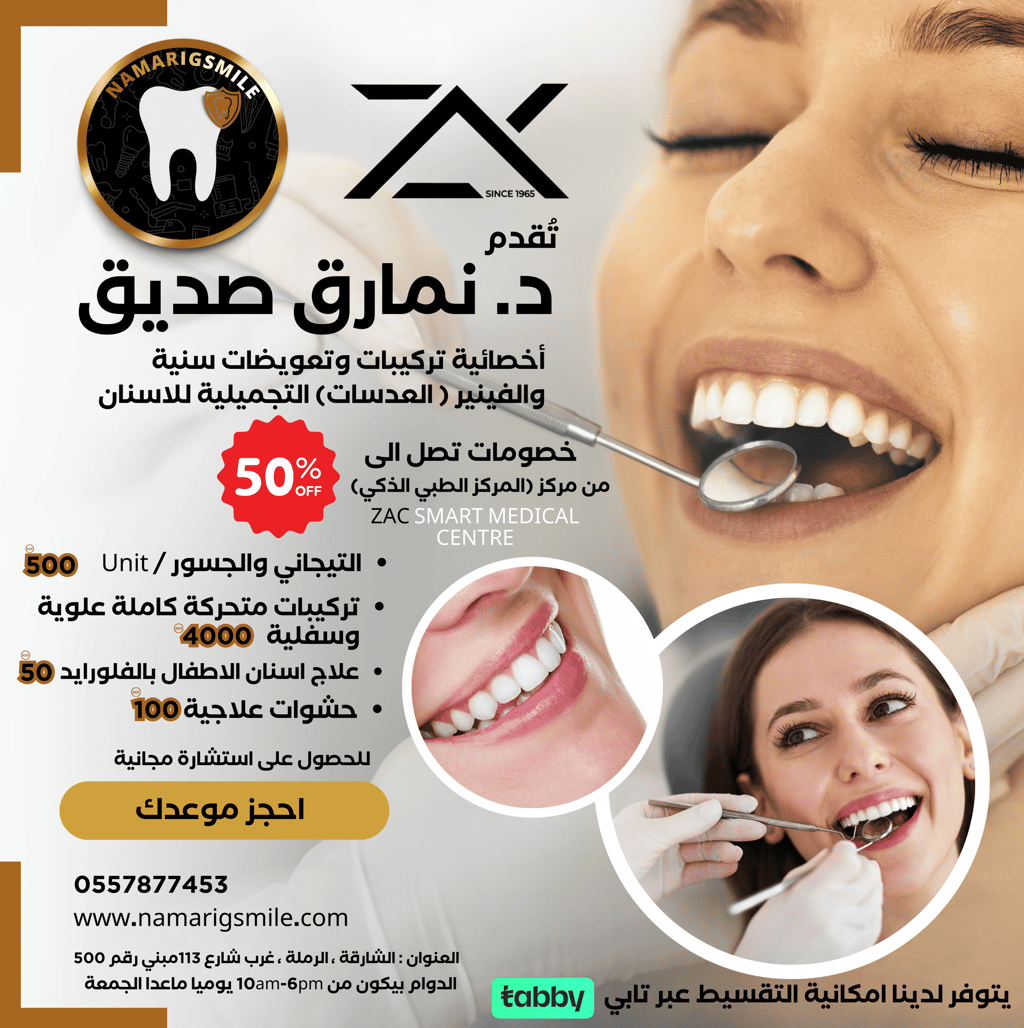 #ابتسامة_مثالية #علاج_الأسنان #تركيبات_سنية #عروض_تجميلية #دكتور_أسنان #الشارقة #خصومات_الأسنان #حجز_موعد #ZACSmartMedical #ابتسامة_ثقة